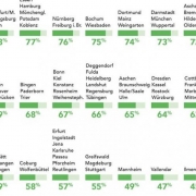 Immer mehr Studierende müssen neben dem Studium arbeiten – weil sie es sich sonst nicht leisten können. Andere arbeiten um mal in den Urlaub zu fahren, Essen zu gehen usw. Das DSW hat mal ne Übersicht gemacht wieviel Prozent der Studierenden in welcher Unistadt arbeiten gehen: