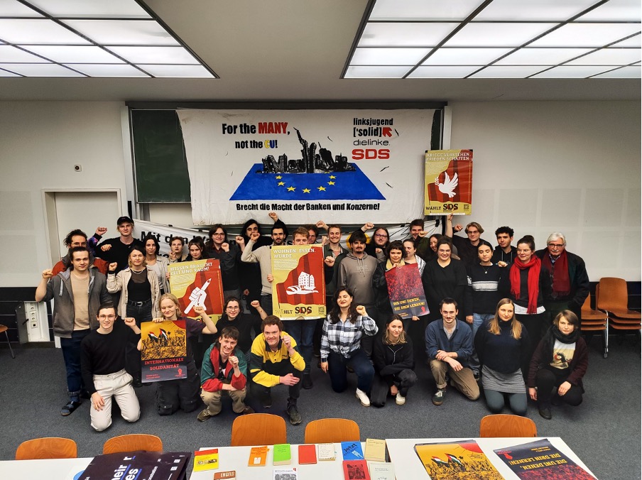 Μπορούμε και πρέπει να μάθουμε από τις εμπειρίες των Ελλήνων συντρόφων μας που είναι η οργάνωση στα πανεπιστήμια και στις σχολές, η οικοδόμηση διαμαρτυριών και η δημιουργία συμμαχιών. Ο αγώνας για πλήρως χρηματοδοτούμενη εκπαίδευση που είναι προσβάσιμη για όλους και ο αγώνας ενάντια στη στρατιωτικοποίηση συνδέουν τους αγώνες μας σε όλη την Ευρώπη. Θέλουμε, λοιπόν, να ενσωματώσουμε τις εμπειρίες τους στον αγώνα μας για ρήτρες πολιτών και ένα Bafög για όλους και να ορθώσουμε το ανάστημά μας μαζί: για την ειρήνη και τον σοσιαλισμό!
