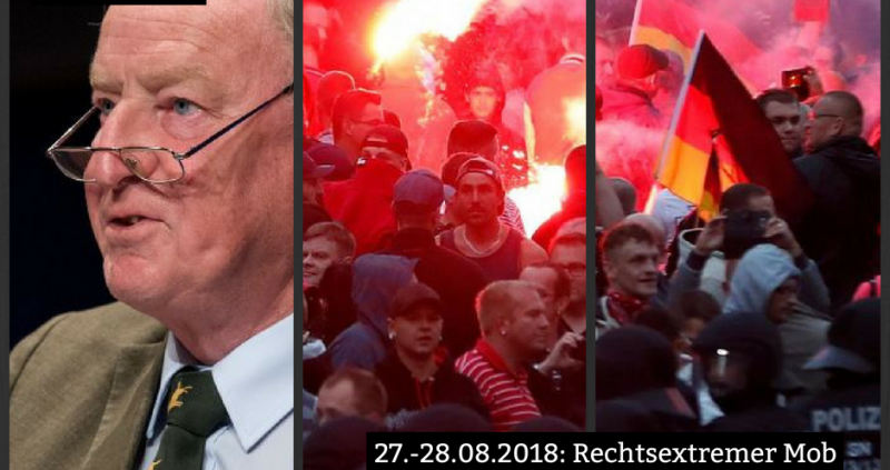 Aufs Schärfste verurteilen wir das Versagen der Polizei Chemnitz. Der Mär von der überforderten Polizei schenken wir keinen Glauben. Denn wir wissen, wie hochgerüstet die Polizei bei linken Demonstrationen auftritt. Nicht erst seit G20 kennen wir die brutalen Eingriffe der Polizei bei Demonstrationen, wenn sie nur will.