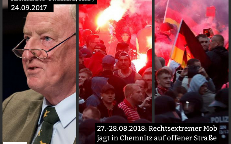 Die Verbündeten der Rechtsextremen bei der AfD (die sich gerne ganz parlamentarsch gibt), in Behörden, im “Verfassungsschutz”, bei der Polizei und im Staat machen solche Aufmärsche möglich. Sie machen “Zwischenfälle” wie den des LKA-Mitarbeiters und Pegida-Demonstranten möglich, der Journalisten mit Hilfe der Polizei an der Ausübung ihrer Pressefreiheit gehindert hat. Sie machen einen Komplex wie den NSU möglich, der jahrelang ungehindert rassistisch morden konnte.